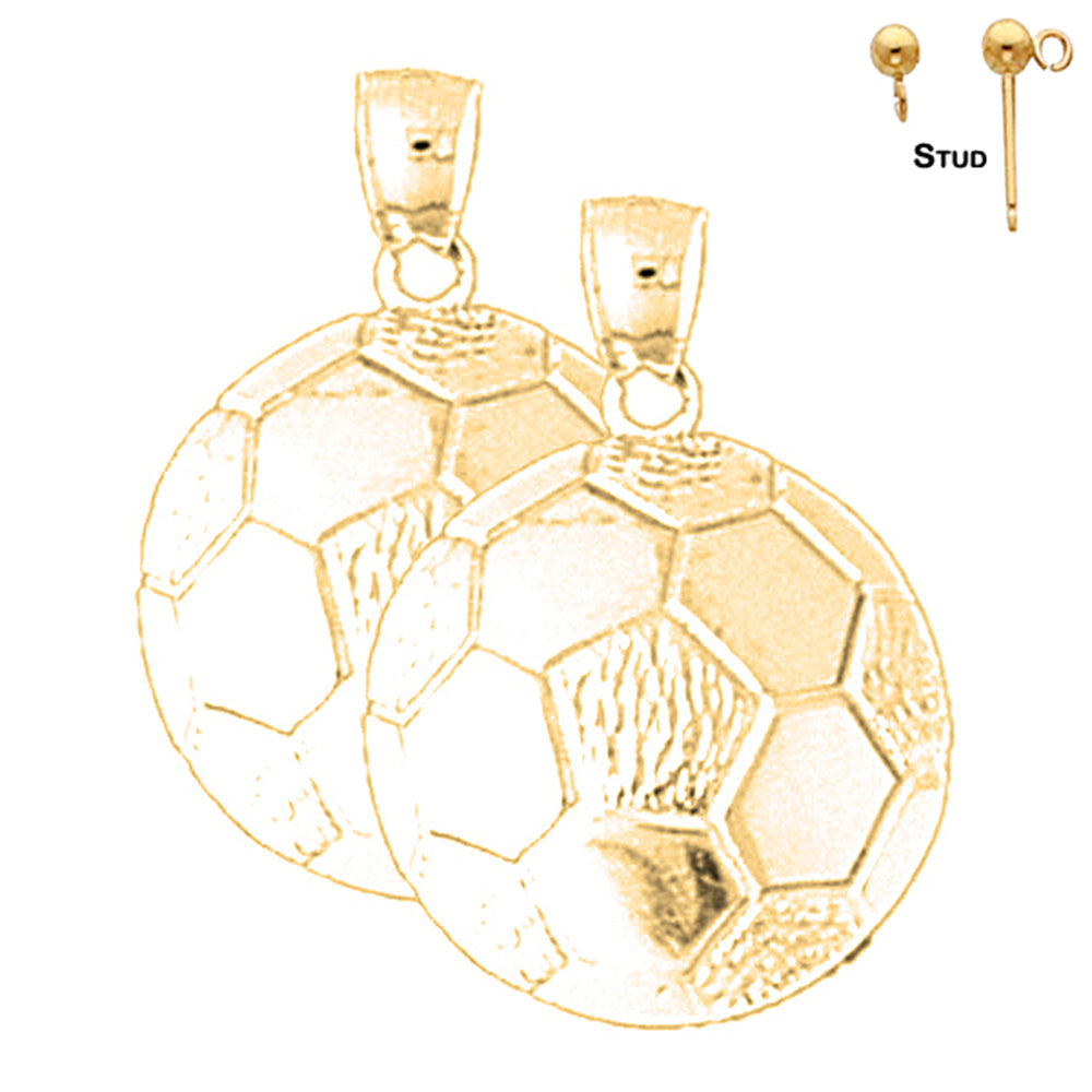 This is an elegant 14k yellow gold 25mm soccer ball earrings. This 14k yellow gold earrings measures 25 mm in length by 17 mm width. JewelsObsession creates all gold jewelry in our state of the art manufacturing facility.