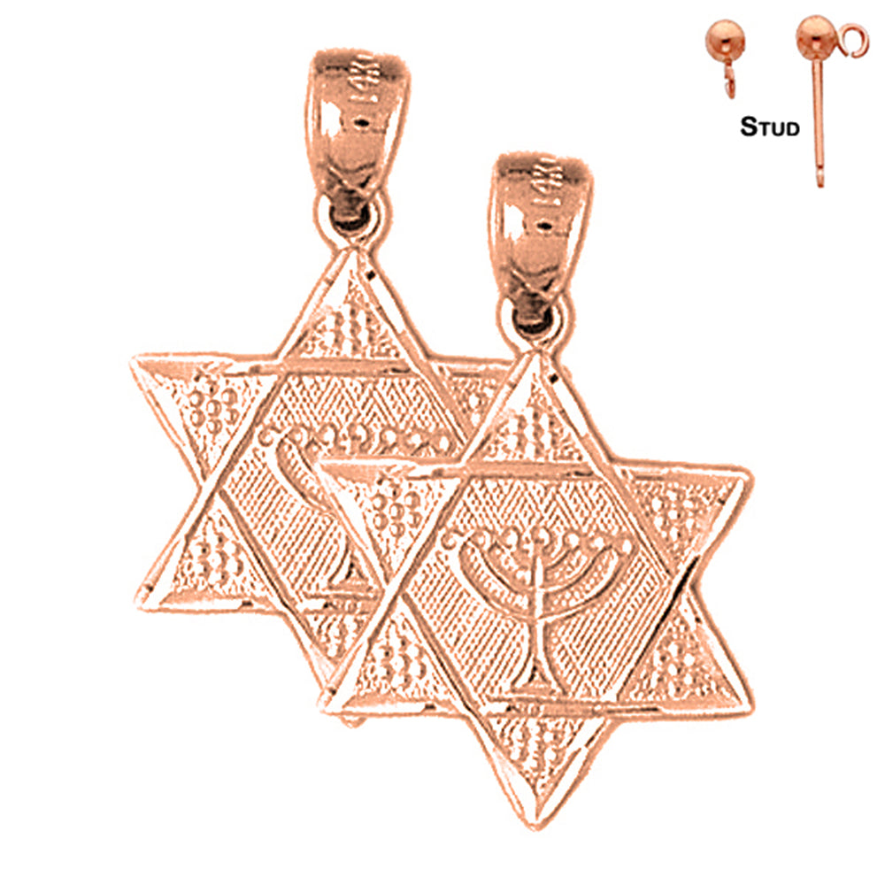 14K or 18K Gold 25mm Star of David with Menorah Earrings