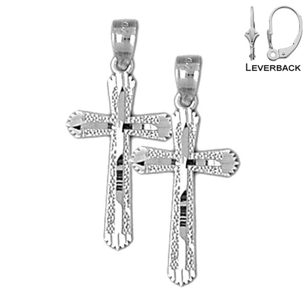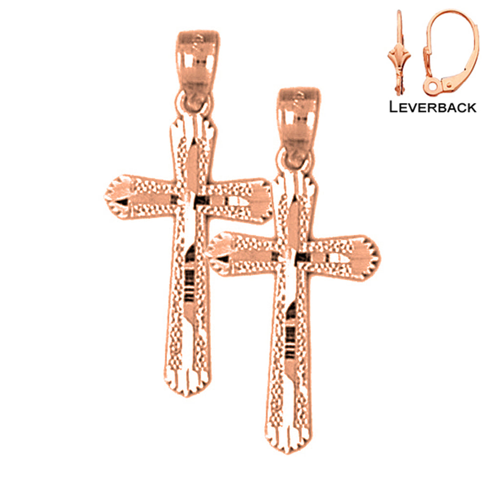 This is a beautiful 14k yellow gold 26mm budded cross earrings. This 14k yellow gold earrings measures 26 mm in length by 12 mm width. JewelsObsession creates all gold jewelry in our state of the art manufacturing facility.
