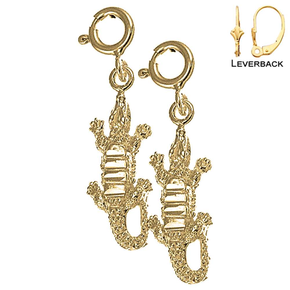 This is a beautiful 14k yellow gold 26mm crocodile earrings. This 14k yellow gold earrings measures 26 mm in length by 9 mm width. JewelsObsession creates all gold jewelry in our state of the art manufacturing facility.