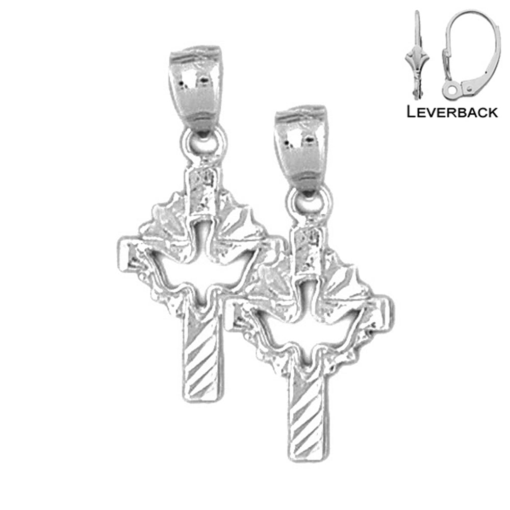 14K or 18K Gold 26mm Dove & Cross Earrings