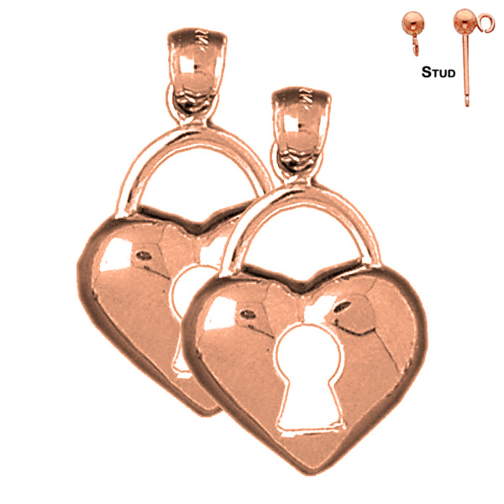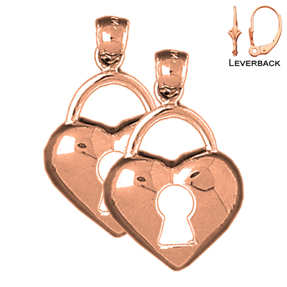 14K or 18K Gold Heart Padlock, Lock Earrings
