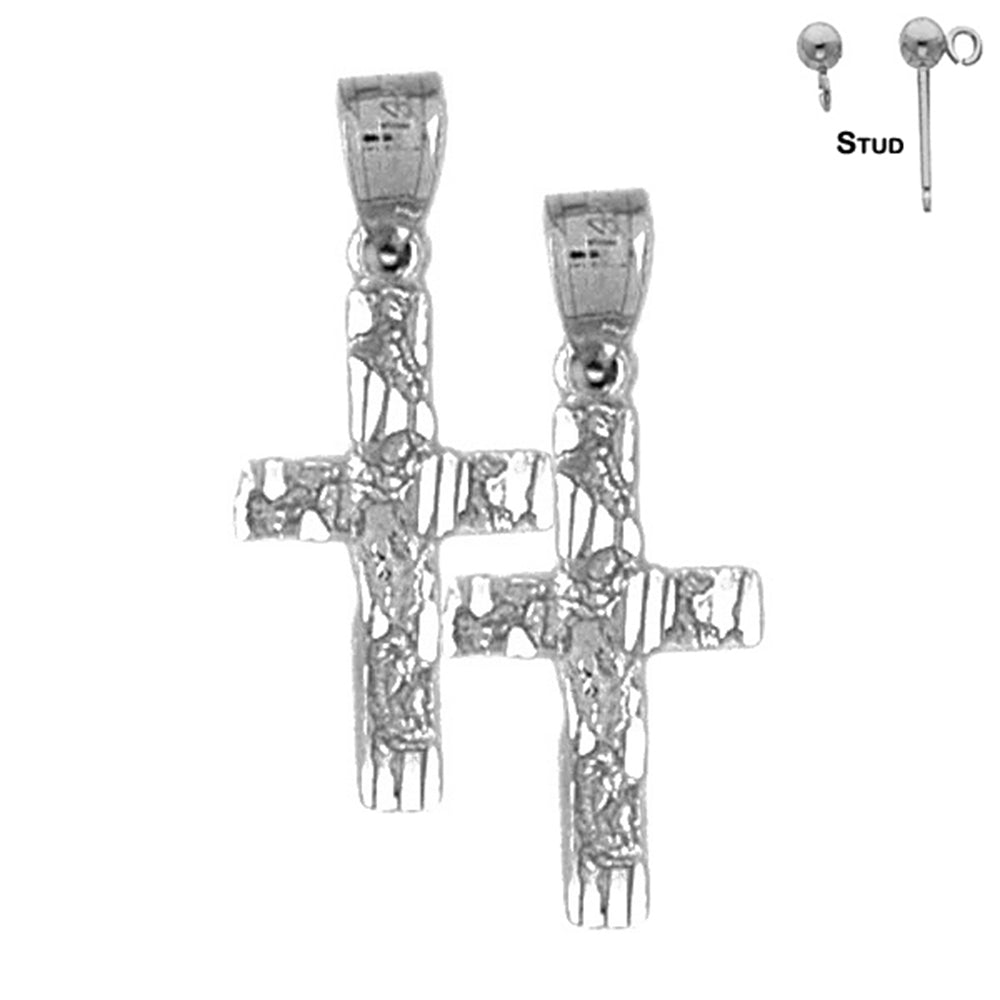 14K or 18K Gold 26mm Nugget Cross Earrings