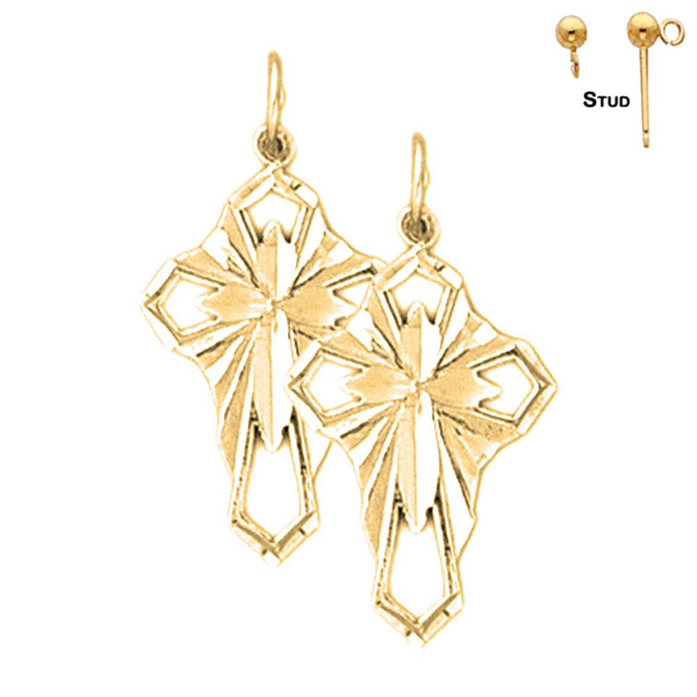 This is an elegant 14k yellow gold 26mm passion cross earrings. This 14k yellow gold earrings measures 26 mm in length by 14 mm width. JewelsObsession creates all gold jewelry in our state of the art manufacturing facility.