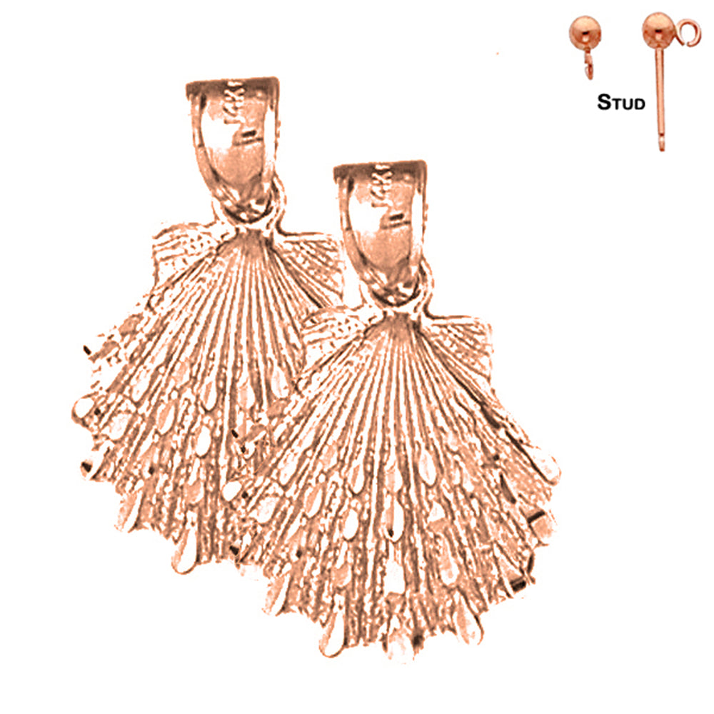 This is a beautiful 14k yellow gold 26mm shell earrings. This 14k yellow gold earrings measures 26 mm in length by 18 mm width. JewelsObsession creates all gold jewelry in our state of the art manufacturing facility.