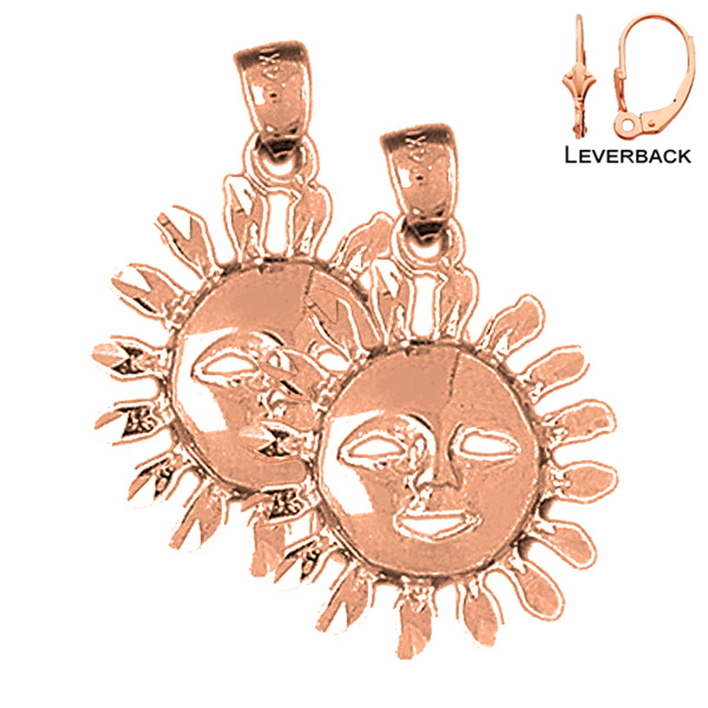 This is a stunning 14k yellow gold 26mm sun earrings. This 14k yellow gold earrings measures 26 mm in length by 18 mm width. JewelsObsession creates all gold jewelry in our state of the art manufacturing facility.