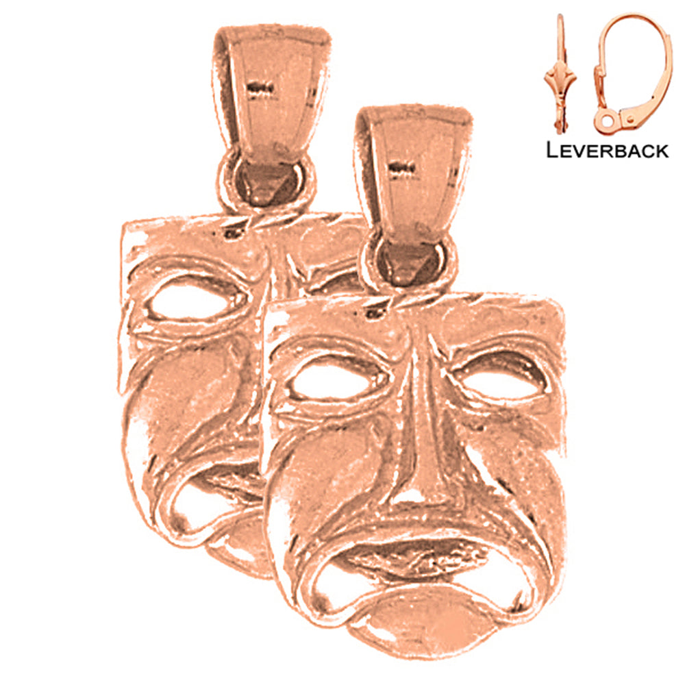 14K or 18K Gold 3D Drama Mask, Cry Later Earrings