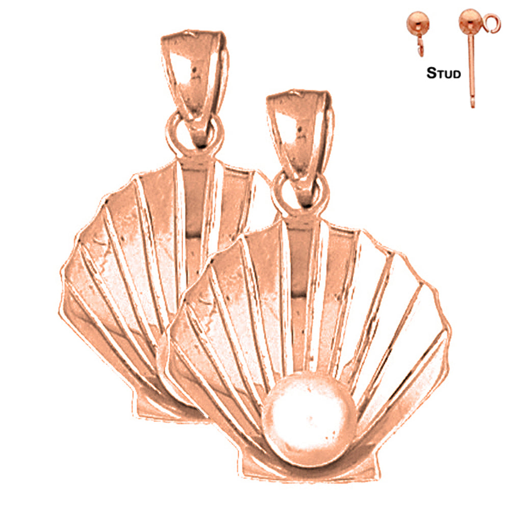 14K or 18K Gold 3D Shell With Pearl Earrings