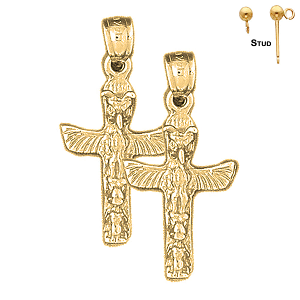 This is a gorgeous 14k yellow gold 28mm totem pole earrings. This 14k yellow gold earrings measures 28 mm in length by 15 mm width. JewelsObsession creates all gold jewelry in our state of the art manufacturing facility.