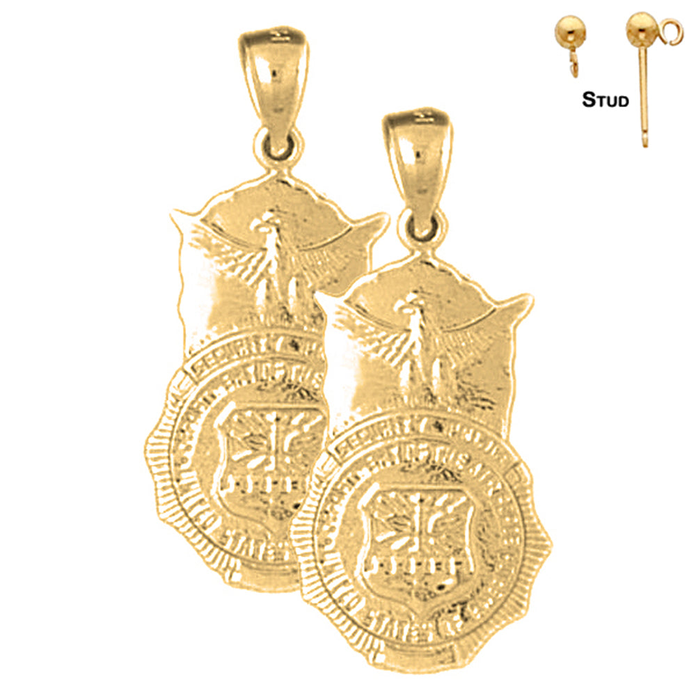 14K or 18K Gold 29mm Air Force Badge Earrings
