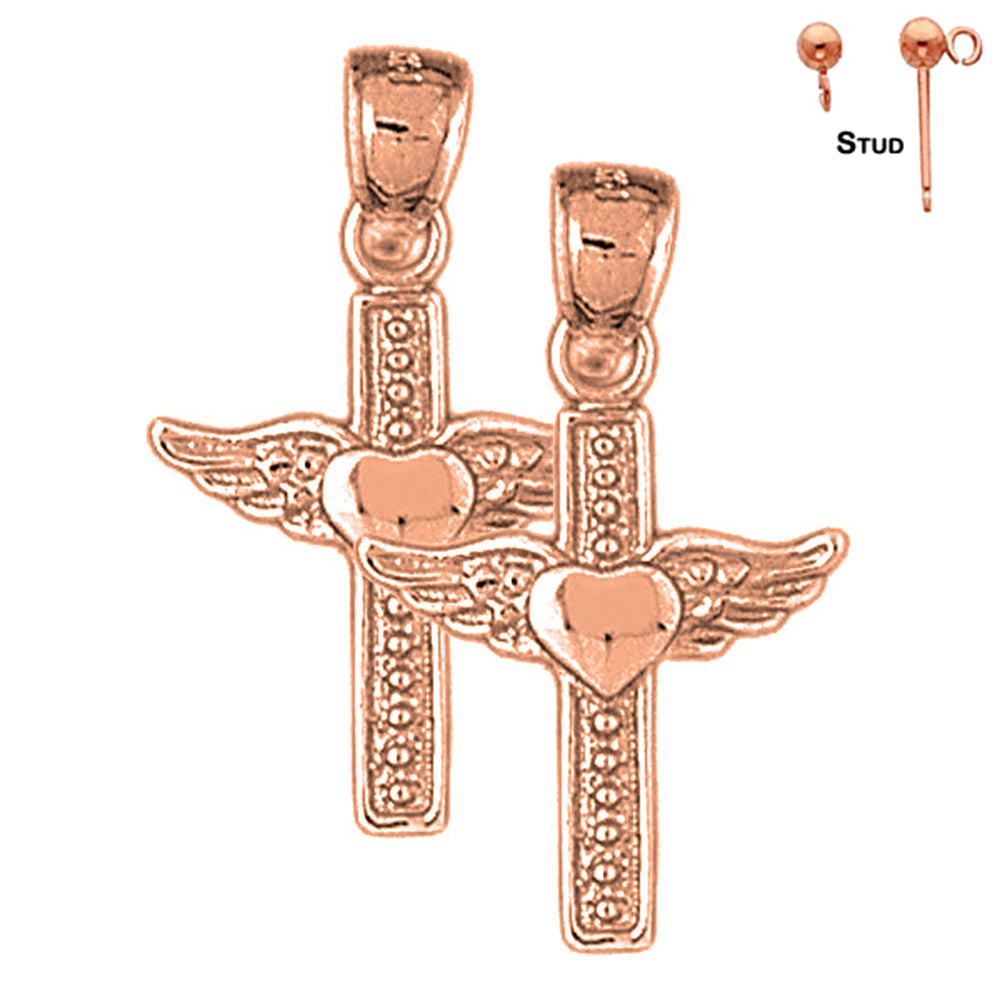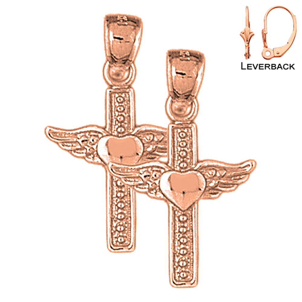 14K or 18K Gold 29mm Heart & Wings Cross Earrings