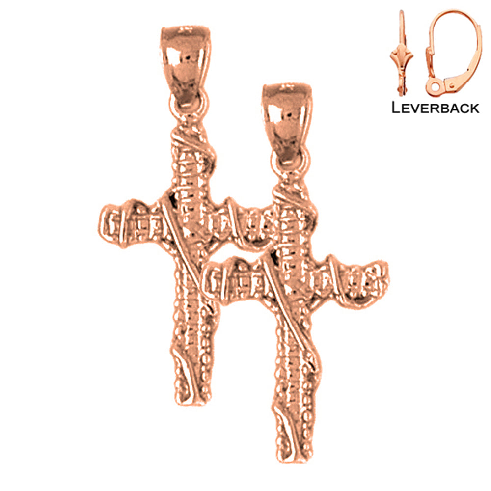 14K or 18K Gold 29mm Roped Cross Earrings