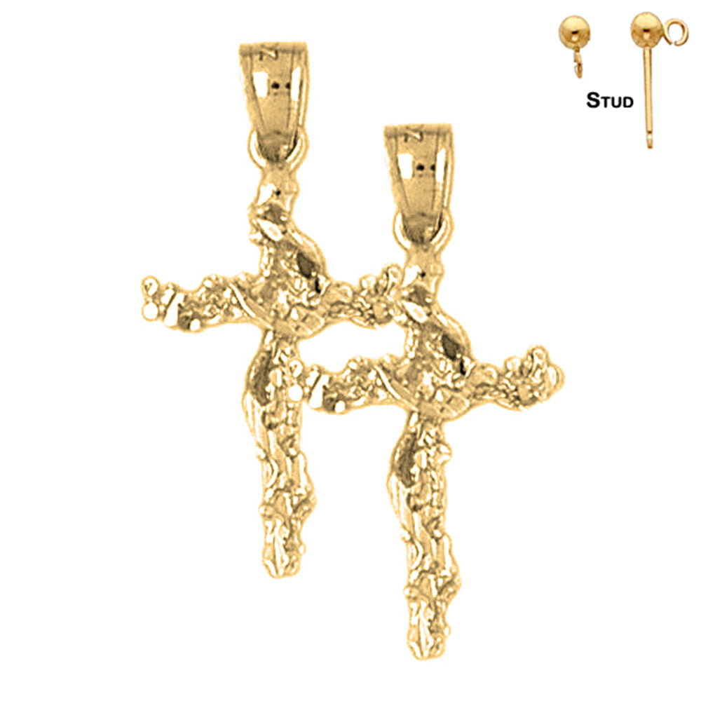 This is a gorgeous 14k yellow gold 29mm vine cross earrings. This 14k yellow gold earrings measures 29 mm in length by 15 mm width. JewelsObsession creates all gold jewelry in our state of the art manufacturing facility.