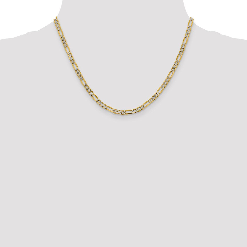 14K Yellow Gold 3.9mm Semi-solid with Rhodium Pave Figaro Chain