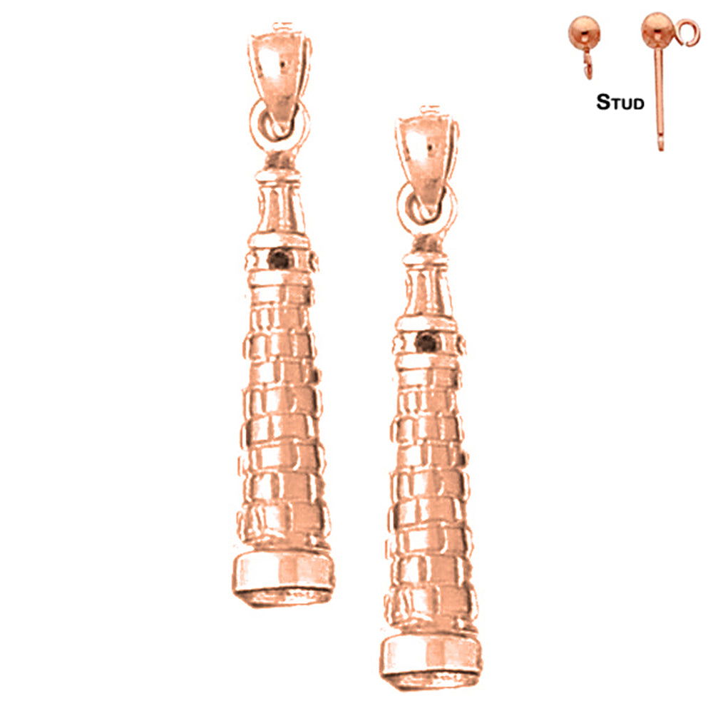 14K or 18K Gold 30mm 3D Leaning Tower Of Pisa Earrings