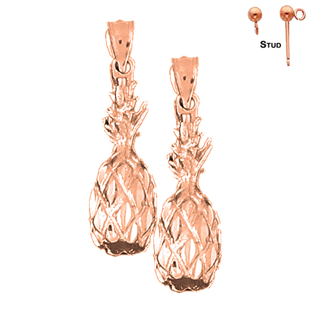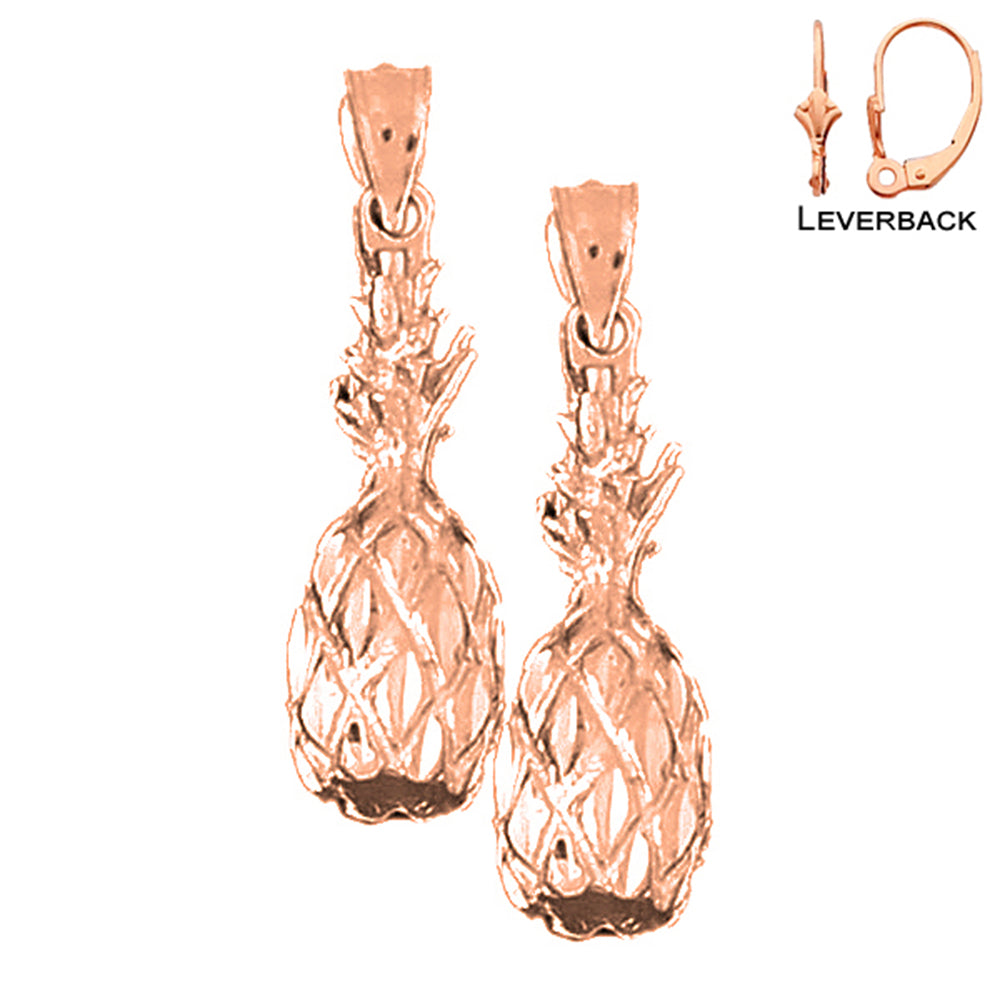 14K or 18K Gold 30mm 3D Pineapple Earrings