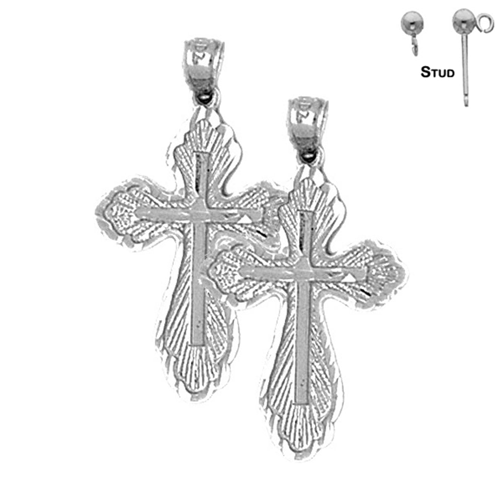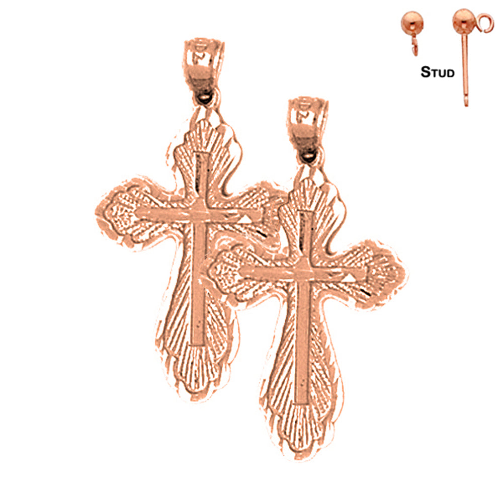 14K or 18K Gold 30mm Budded Cross Earrings