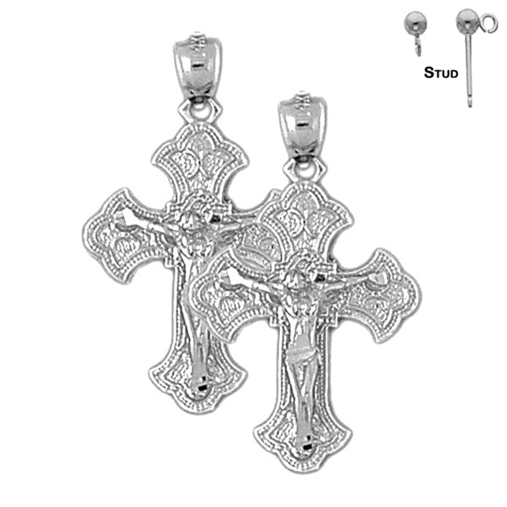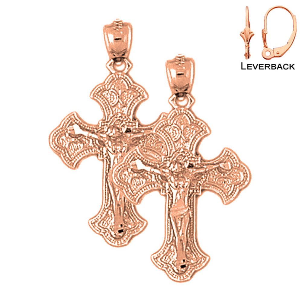 14K or 18K Gold 30mm Budded Crucifix Earrings