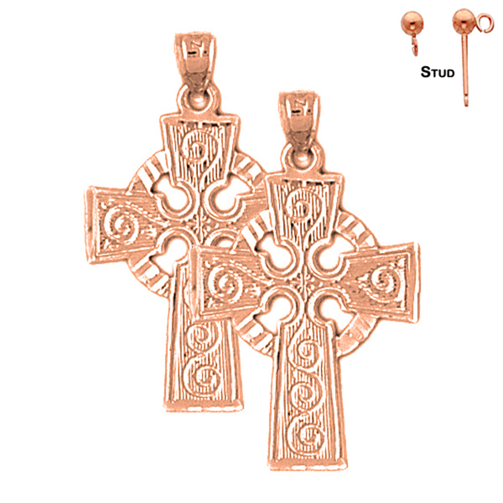 14K or 18K Gold 30mm Celtic Cross Earrings