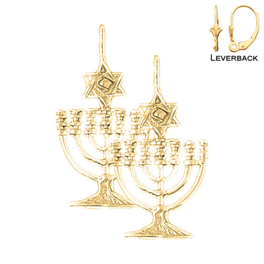 14K or 18K Gold 30mm Menorah with Star of David Earrings
