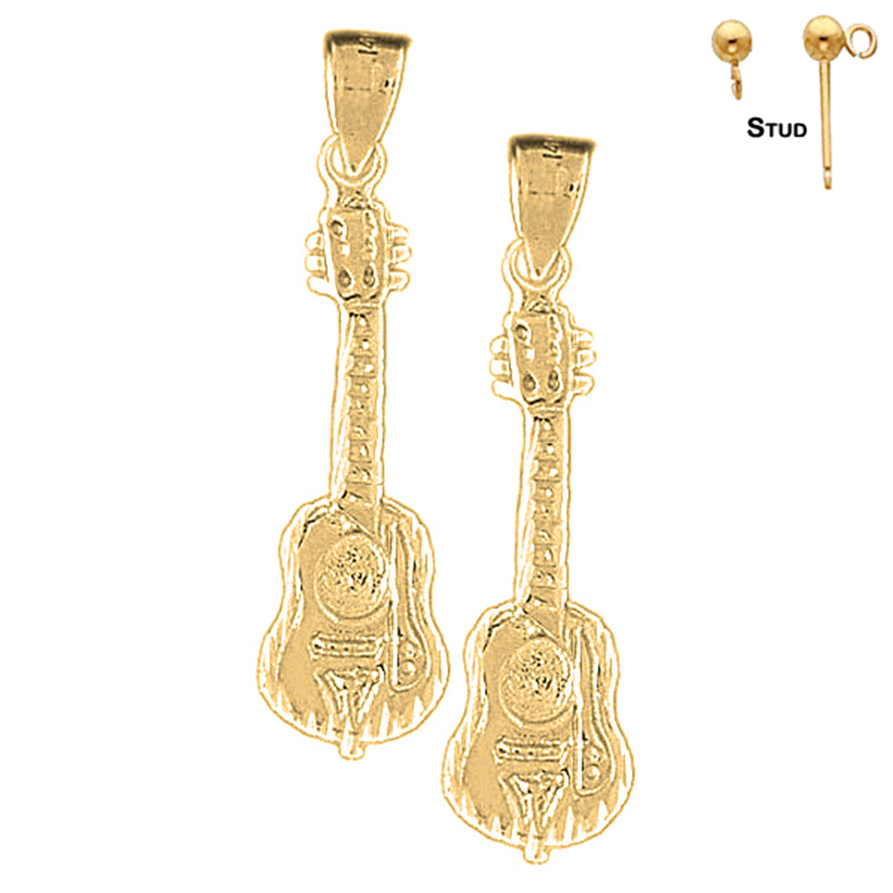 This is a stunning 14k yellow gold 31mm acoustic guitar earrings. This 14k yellow gold earrings measures 31 mm in length by 9 mm width. JewelsObsession creates all gold jewelry in our state of the art manufacturing facility.