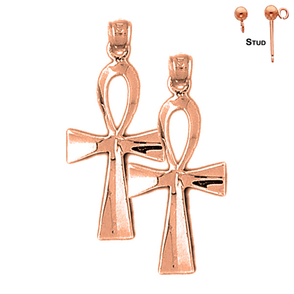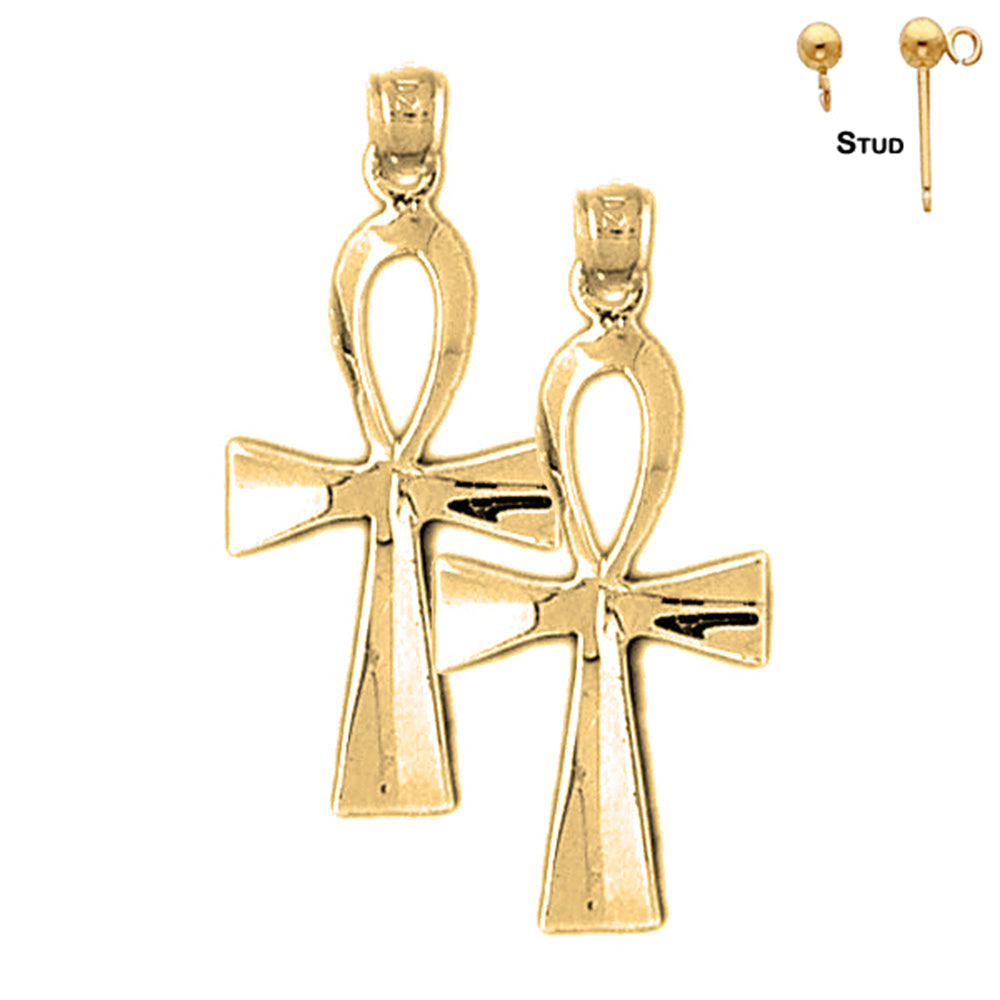 14K or 18K Gold 31mm Ankh Cross Earrings