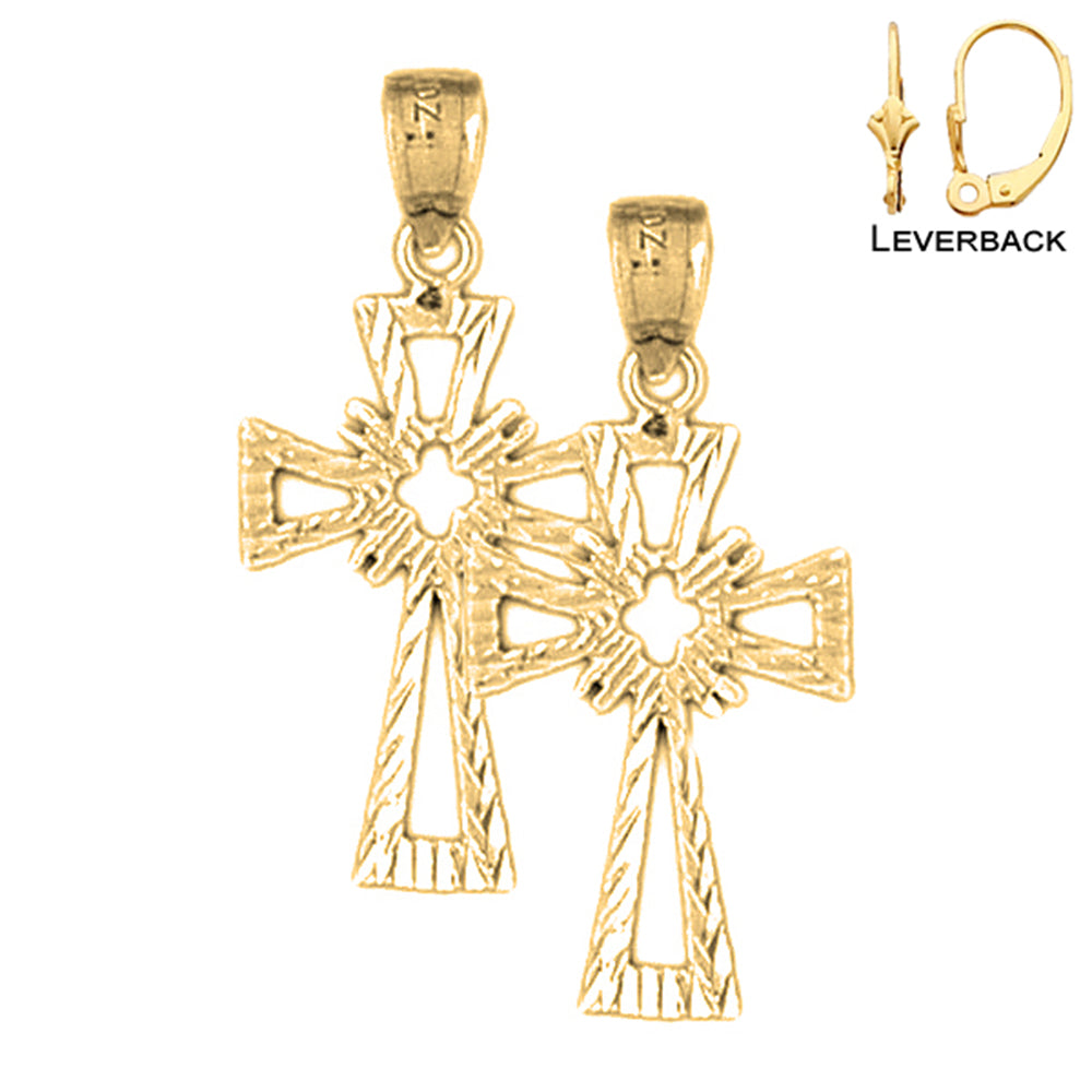 14K or 18K Gold 31mm Celtic Cross Earrings