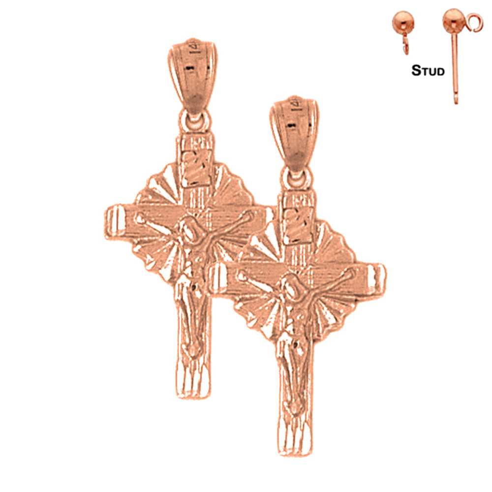 14K or 18K Gold 31mm Glory Crucifix Earrings