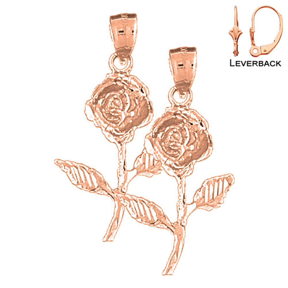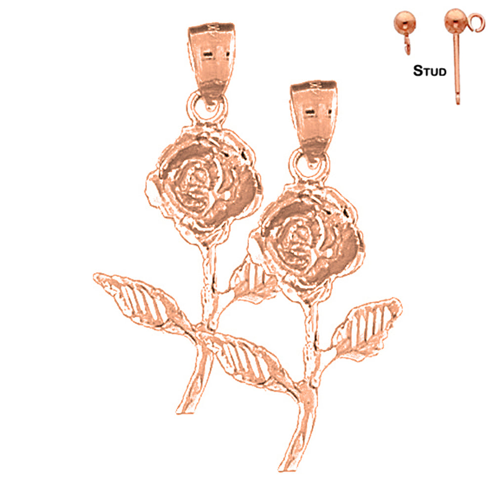 This is an elegant 14k yellow gold 31mm rose flower earrings. This 14k yellow gold earrings measures 31 mm in length by 17 mm width. JewelsObsession creates all gold jewelry in our state of the art manufacturing facility.