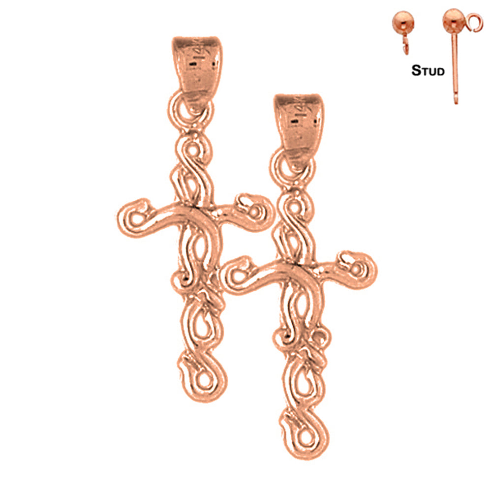 This is a stunning 14k yellow gold 31mm vine cross earrings. This 14k yellow gold earrings measures 31 mm in length by 13 mm width. JewelsObsession creates all gold jewelry in our state of the art manufacturing facility.