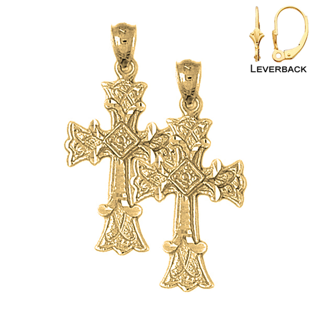 14K or 18K Gold 32mm Budded Cross Earrings