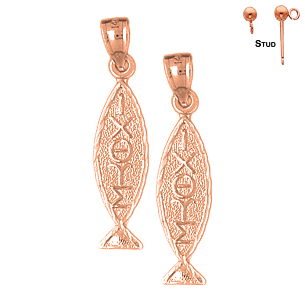 14K or 18K Gold Christian Fish With Oxeye Earrings