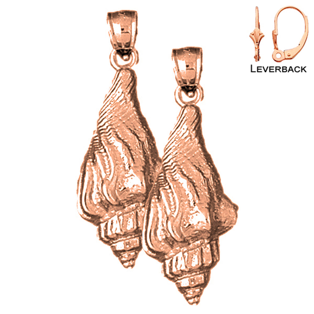 This is a beautiful 14k yellow gold 32mm conch shell earrings. This 14k yellow gold earrings measures 32 mm in length by 13 mm width. JewelsObsession creates all gold jewelry in our state of the art manufacturing facility.