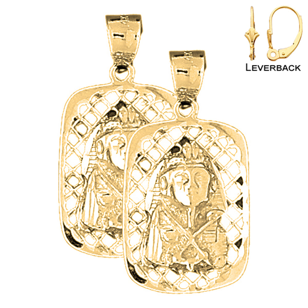 This is a beautiful 14k yellow gold 32mm king tut earrings. This 14k yellow gold earrings measures 32 mm in length by 17 mm width. JewelsObsession creates all gold jewelry in our state of the art manufacturing facility.