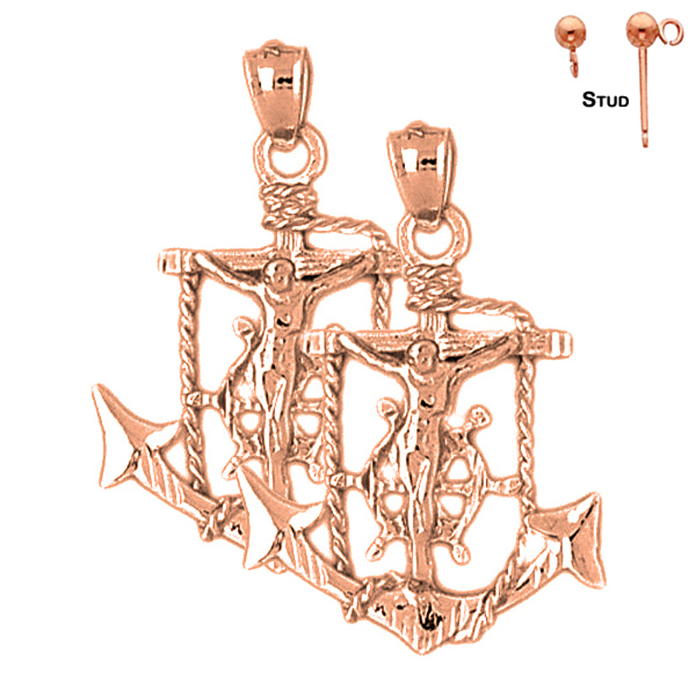 14K or 18K Gold 32mm Mariners Cross/Crucifix Earrings