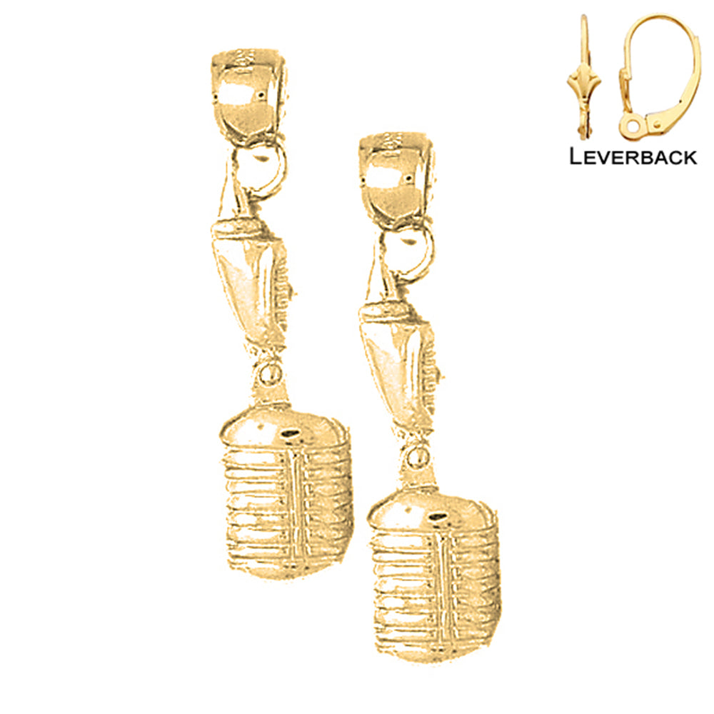 This is a beautiful 14k yellow gold 32mm microphone earrings. This 14k yellow gold earrings measures 32 mm in length by 8 mm width. JewelsObsession creates all gold jewelry in our state of the art manufacturing facility.