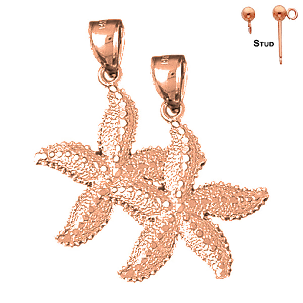 This is an elegant 14k yellow gold 32mm starfish earrings. This 14k yellow gold earrings measures 32 mm in length by 25 mm width. JewelsObsession creates all gold jewelry in our state of the art manufacturing facility.
