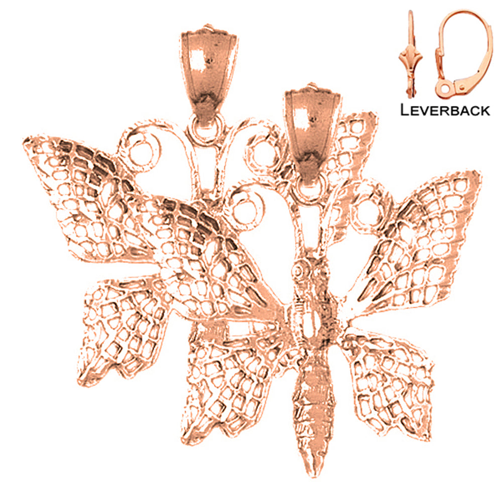 This is a stunning 14k yellow gold 33mm butterflies earrings. This 14k yellow gold earrings measures 33 mm in length by 30 mm width. JewelsObsession creates all gold jewelry in our state of the art manufacturing facility.