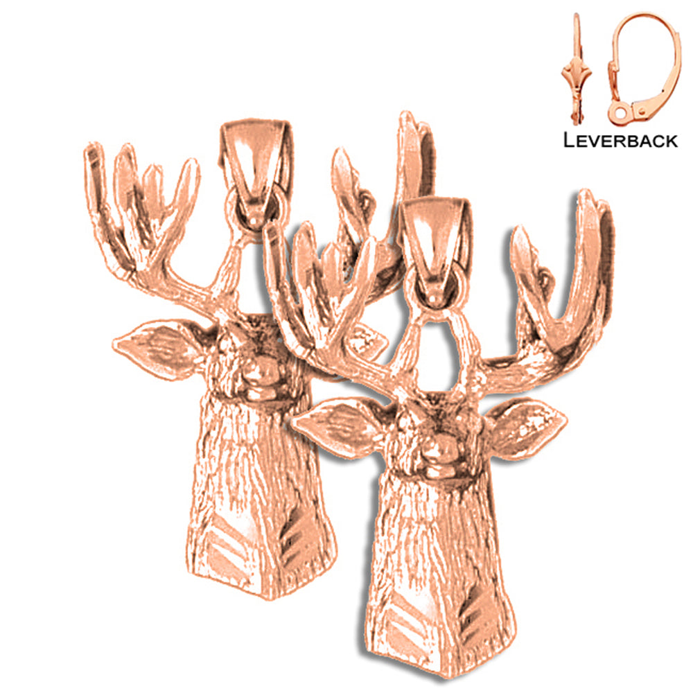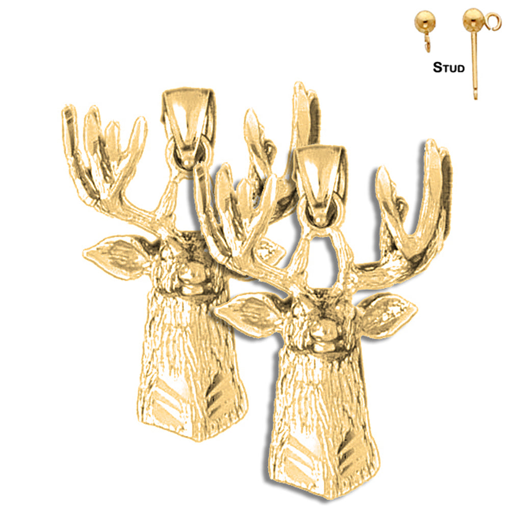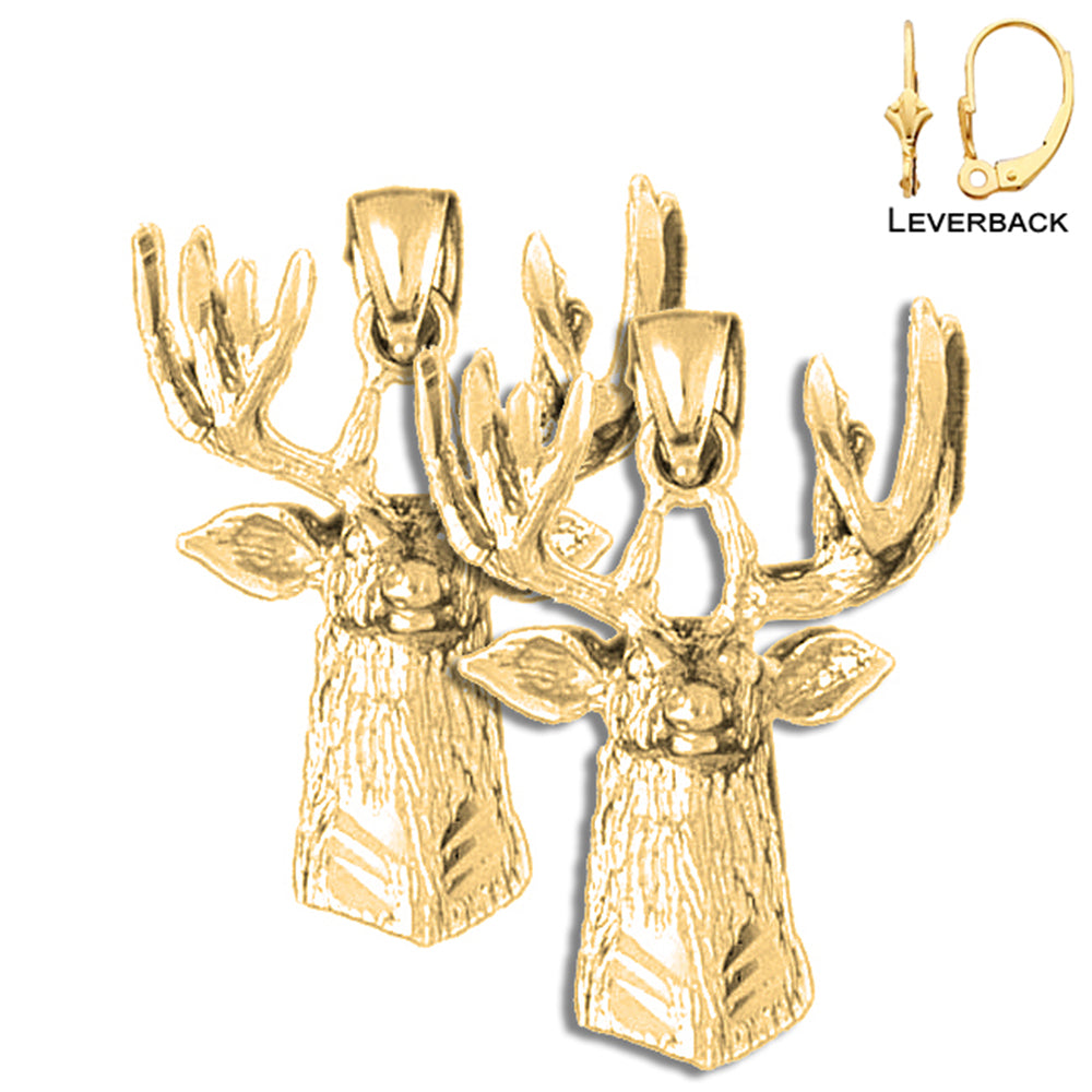 This is an elegant 14k yellow gold 33mm deer earrings. This 14k yellow gold earrings measures 33 mm in length by 24 mm width. JewelsObsession creates all gold jewelry in our state of the art manufacturing facility.
