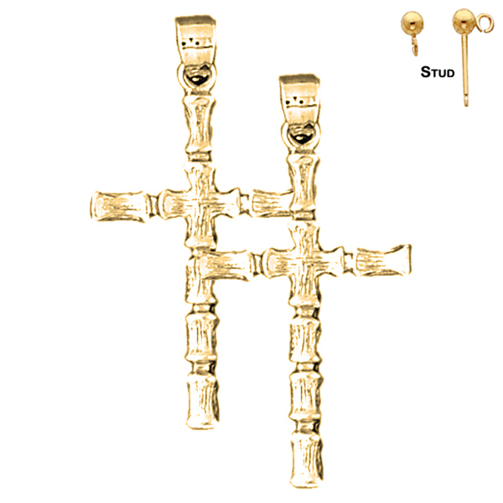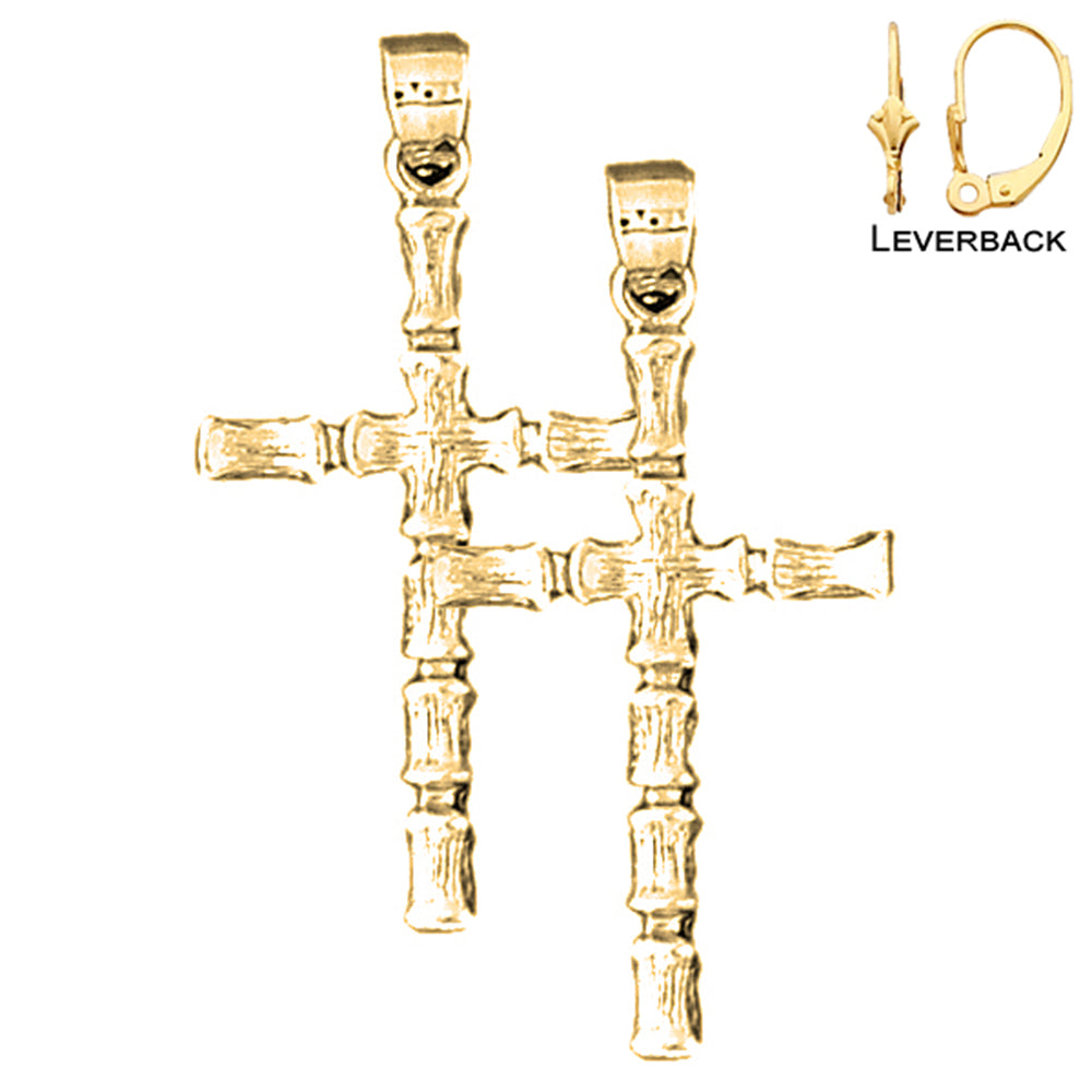 This is a gorgeous 14k yellow gold 33mm other cross earrings. This 14k yellow gold earrings measures 33 mm in length by 18 mm width. JewelsObsession creates all gold jewelry in our state of the art manufacturing facility.