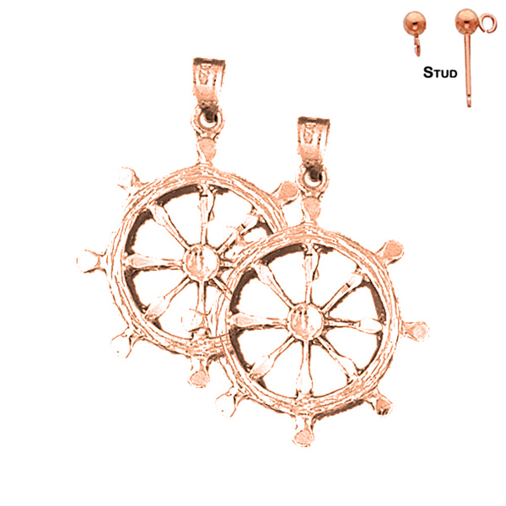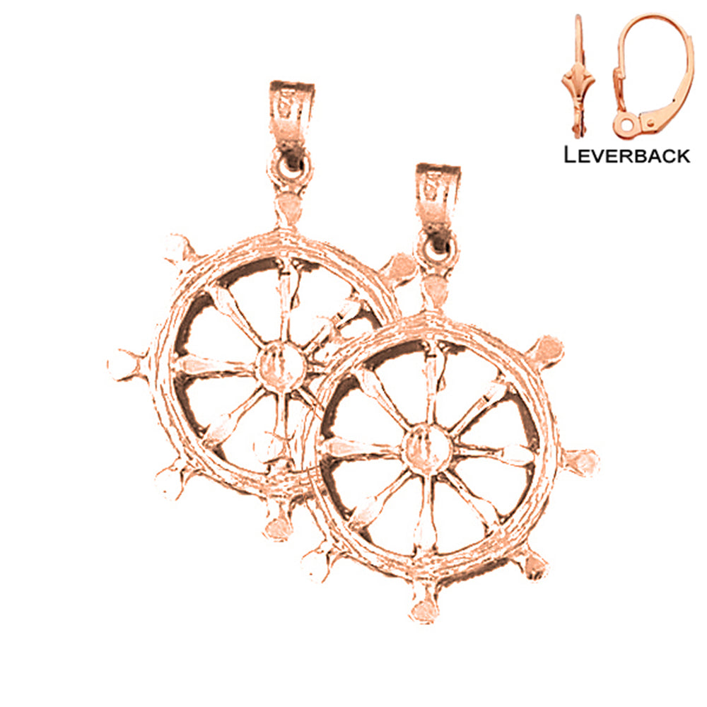 14K or 18K Gold 33mm Ships Wheel Earrings