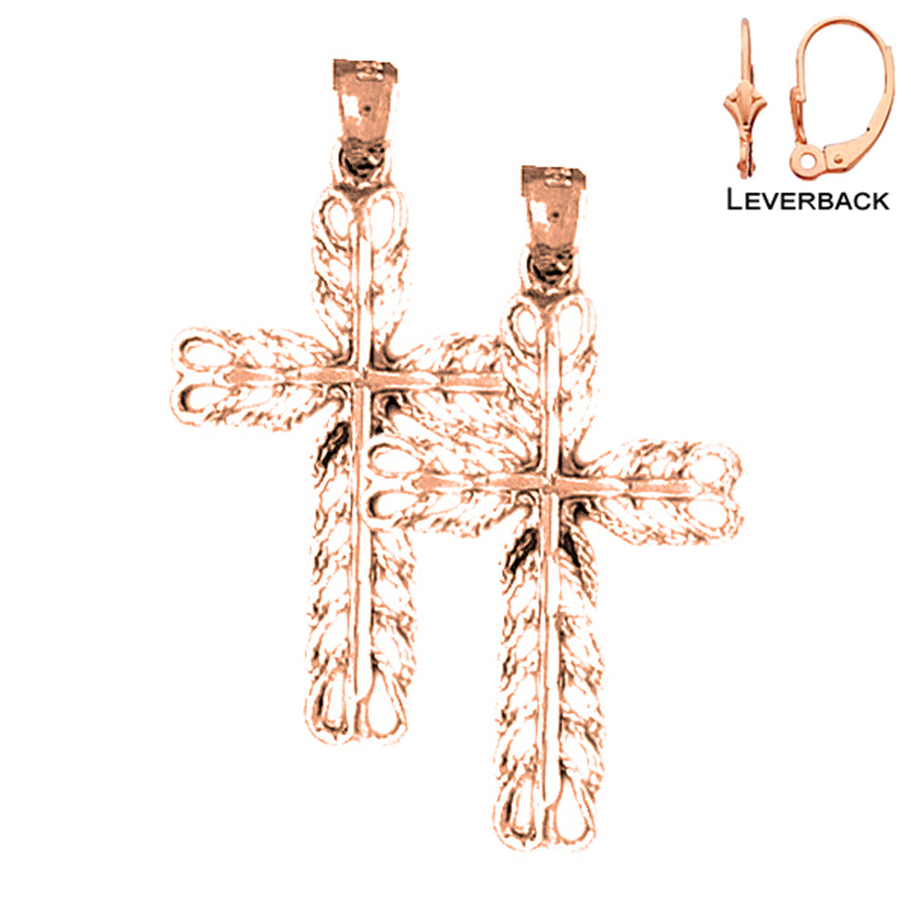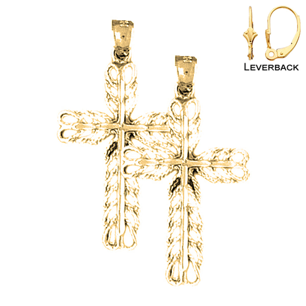 This is a beautiful 14k yellow gold 33mm vine cross earrings. This 14k yellow gold earrings measures 33 mm in length by 19 mm width. JewelsObsession creates all gold jewelry in our state of the art manufacturing facility.