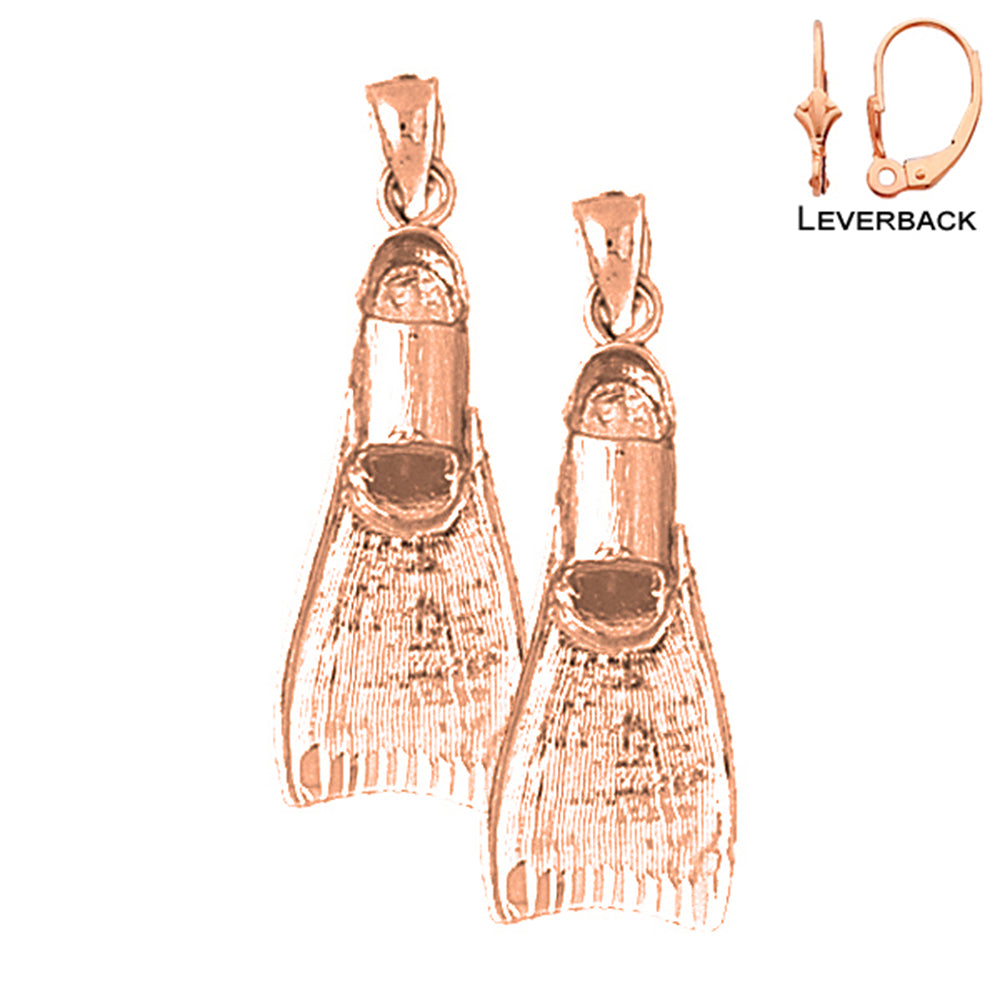 14K or 18K Gold 34mm 3D Scuba Finn Earrings
