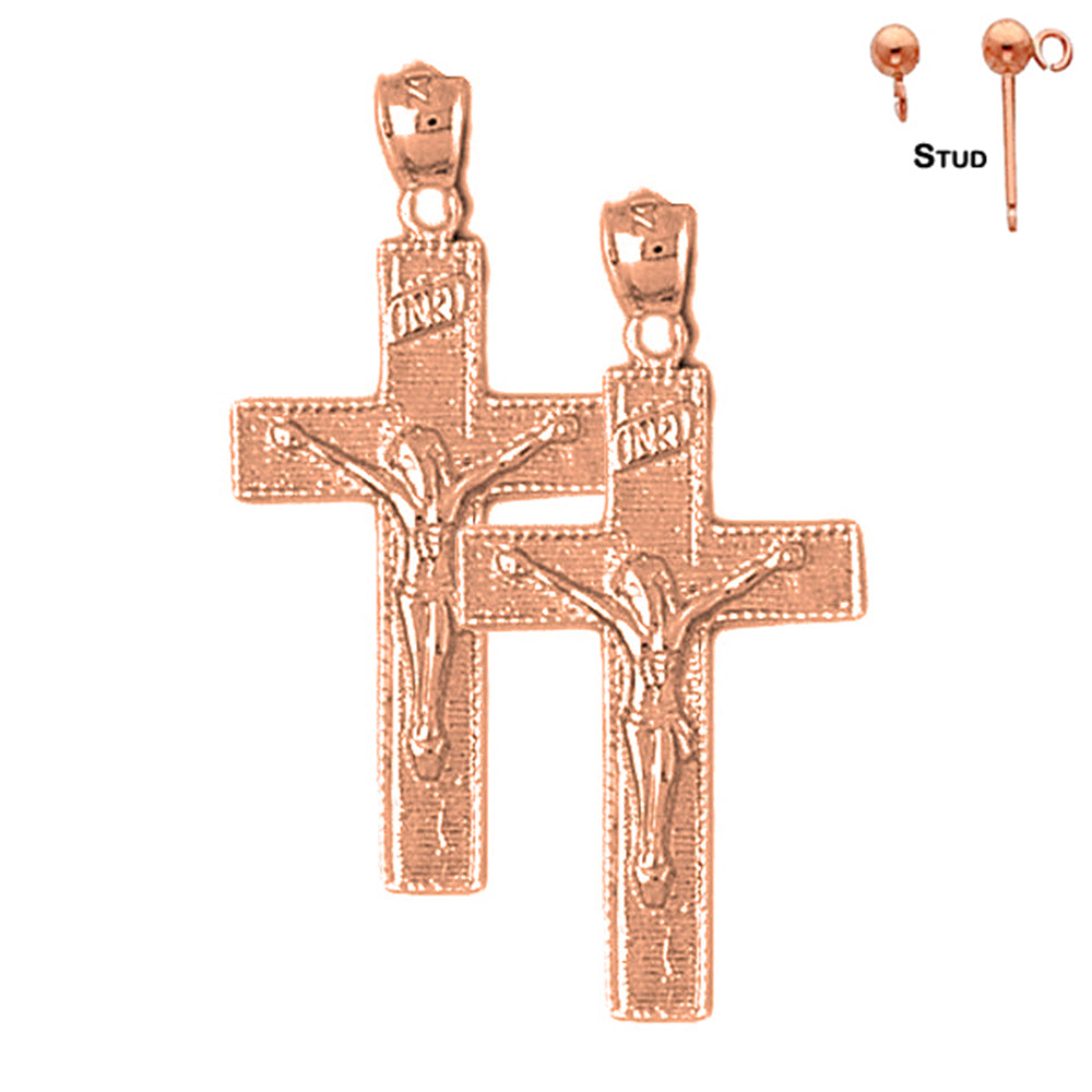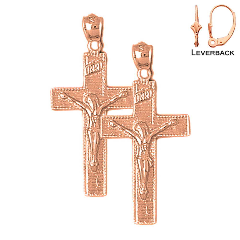 14K or 18K Gold 34mm INRI Crucifix Earrings