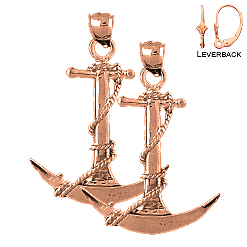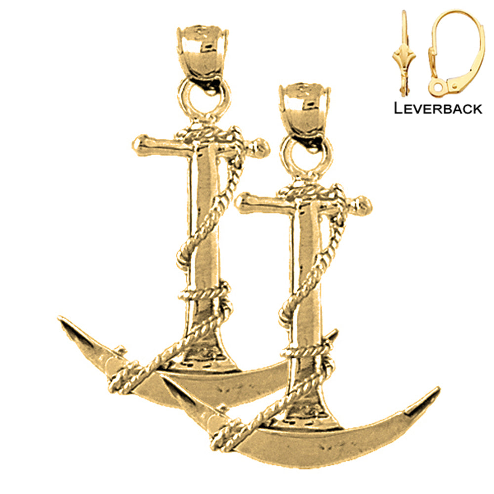 14K or 18K Gold 35mm Anchor 3D Earrings