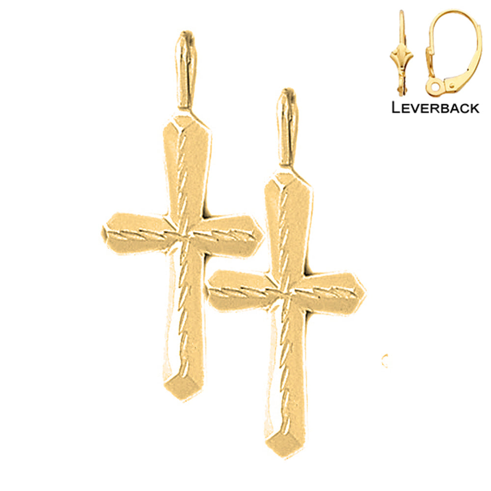 This is a beautiful 14k yellow gold 35mm passion cross earrings. This 14k yellow gold earrings measures 35 mm in length by 16 mm width. JewelsObsession creates all gold jewelry in our state of the art manufacturing facility.