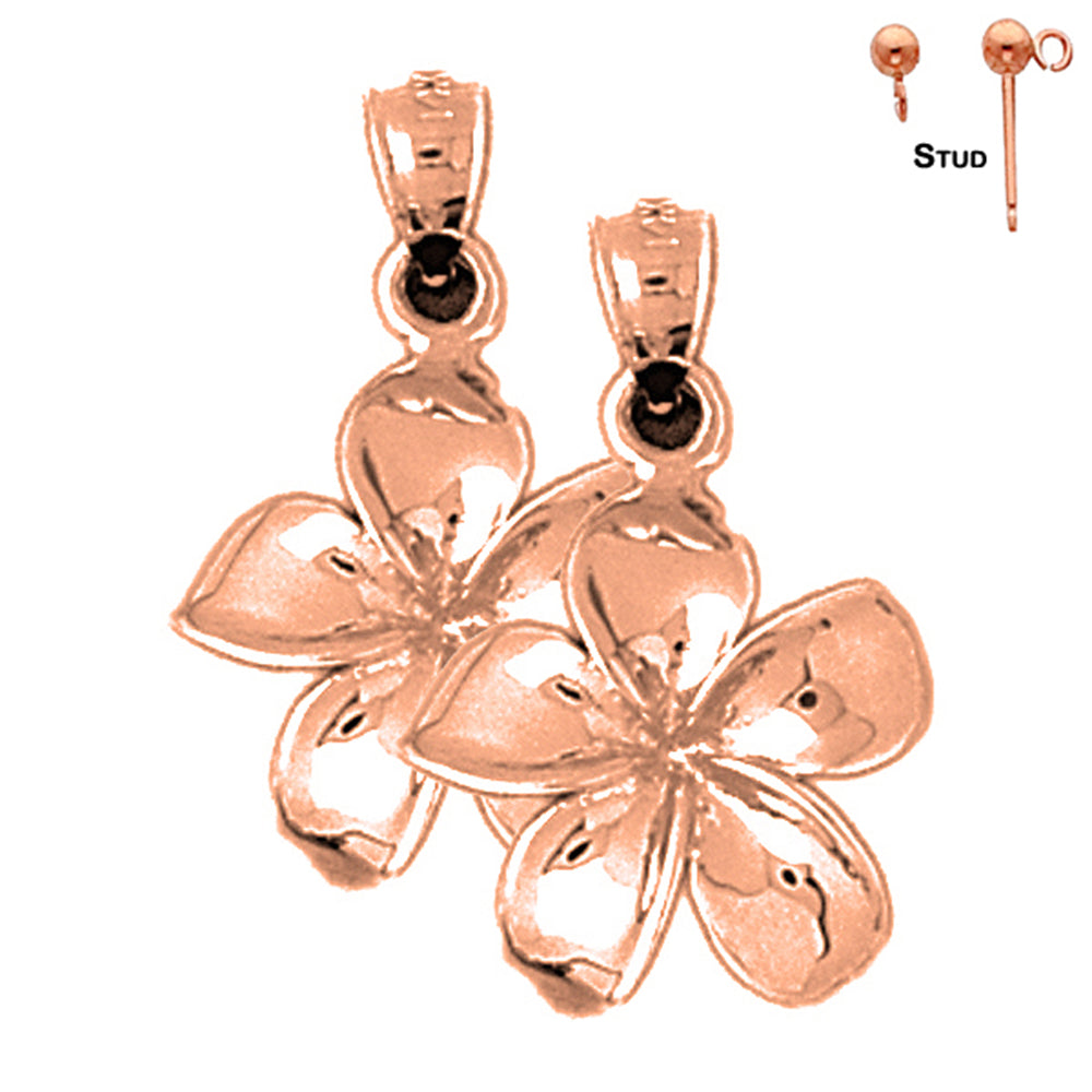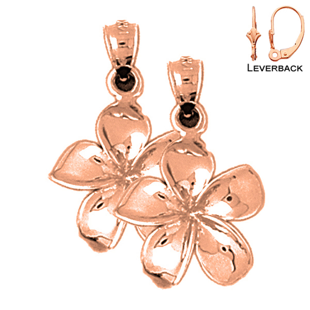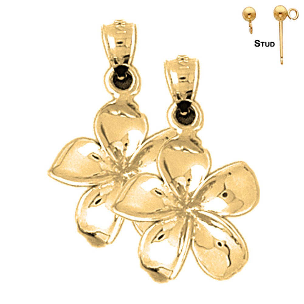 14K or 18K Gold 35mm Plumeria Flower Earrings