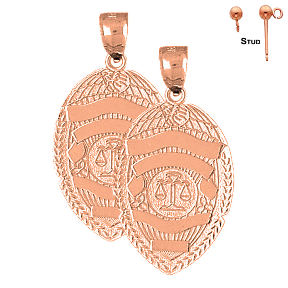14K or 18K Gold 35mm Scales of Justice Badge Earrings