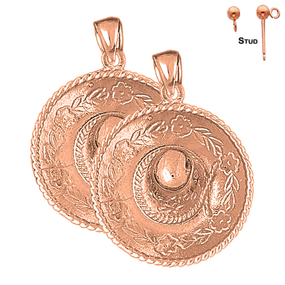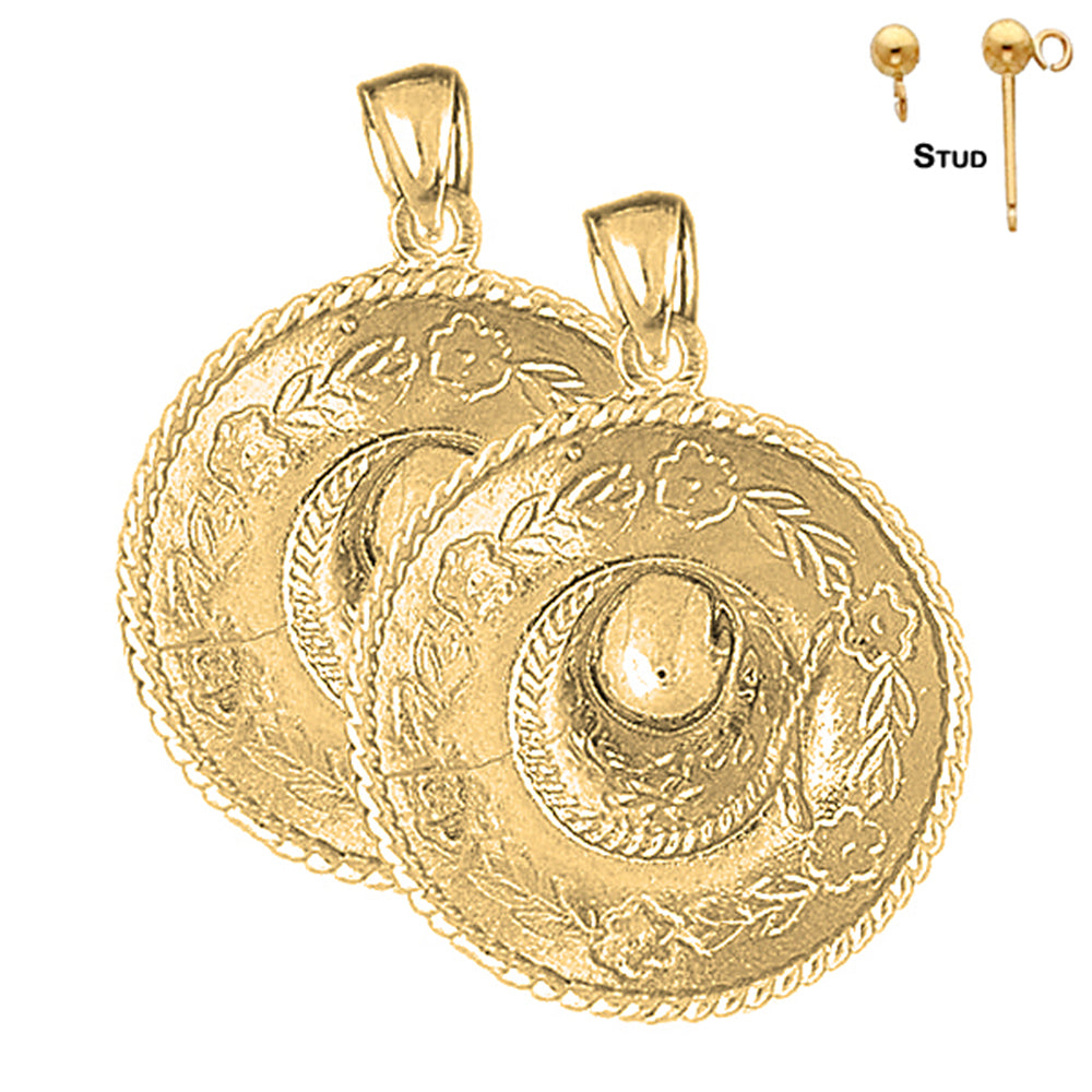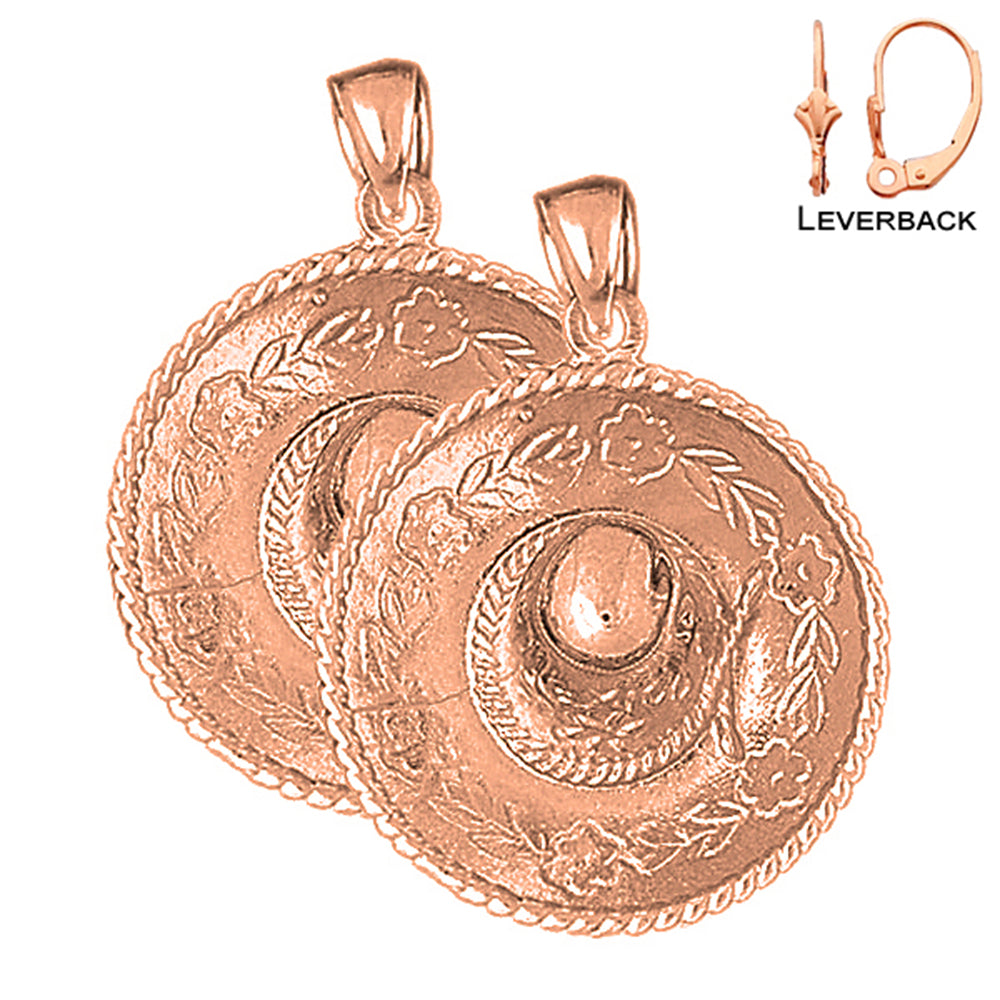 14K or 18K Gold 36mm 3D Sombrero Earrings