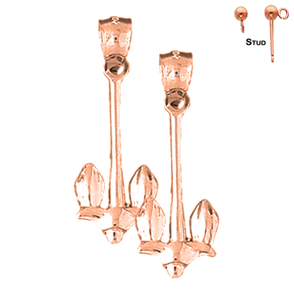 Earring Style: We offer three style types for these earings. Post earrings are also referred to as studs. They are the round balls with the straight stem that goes through your ear and you put a backing on it that resembles a butterfly a little bit to hold it in place. Hinged earrings also know as leverback is the enclosure of an earring. The back is often curved like a fish hook. The enclosure bends and latches behind the ear. Fishhook earrings also known as French wire or French ear wire, the hook end passes through the pierced ear, while an ornament hangs from the other end.